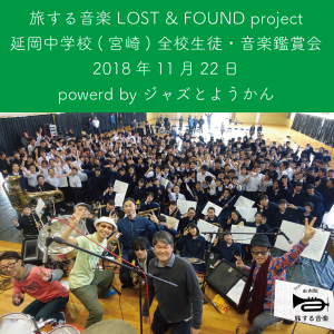 私どもジャズとようかんの音楽部門、旅する音楽の文化支援プロジェクト「LOST&FOUND」として、約1年ぶりに中学校での音楽鑑賞会を行います。