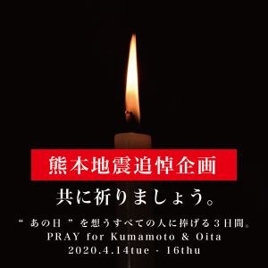 熊本地震追悼企画「PRAY for Kumamoto & Oita」4/14(火)〜16(木)